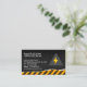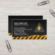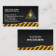 Electrician Electrical Contractor business card features high voltage icon over yellow warning stripes . Perfect for electric, electrical, electrical contractor , electricity, contractor, handyman, house repair, home repair.