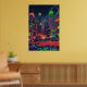 Experience the wild pulse of city nightlife with this surreal urban artwork, where neon colours and warped skyscrapers collide in chaotic energy. Perfect for lovers of neon cityscape art, street art urban prints, and dynamic graphic city designs.