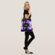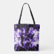 Personalise with your initial and name. All over print tote bag with Electrifying purple sparkly triangle flames. Purple, black and white triangle geometric mesh with abstract smoke and sparkles print.