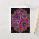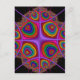 A design featuring psychedelic multihued irregular concentric medallions within a quadrilateral veined framework.