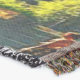 A quality printed throw has its advantages. This is a much finer weave throw than its loopier cousins, and though lighter, it is worth the investment for custom room accessorizing. The back is much prettier than the typical brown, and the fringe on the long sides very vivid, the selvage nicely done. Before photographing, I washed the throw in cold water, delicate, with a thicker woven throw the same size. On tumble dry low, this throw was dry in half the time as the other. This is a very practical quality if you use throws for furniture covers or to wrap up in frequently. The sleekness of the fabric makes it a great layer for accenting or protecting without the feeling of sitting on too much stuff. Perfect for napping or when you feel a light chill coming on. The color printing is beautiful and on this fabric, matched the design and color of my Photoshop image. This is an advantage for blending room fabrics and colors. The fringe on the short sides prints the colors from the design image and therefore varies from the side fringe. I streaked a white fractal line through the plaid pattern to give the illusion of weaving. This printed as crisp as an illusory thread, and put some white in the short side fringe, showing another advantage of print vs loomed- for artistic purposes, line lines, detail, and color integrity can be planned and preserved. My loomed throws have color limitations and more of a needlepoint texture. Print throws reproduce an exact image. The throw felt a little stiff straight out of the package, but this went away in the first delicate wash. Of course I searched the wash water for ink or bleeding and there was none.