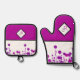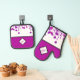 The top half is a captivating expanse of a rich medium violet-red pink, while the lower half features a delightful floral dance in shades of pink against a crisp white background. Must-have accessories to reflect your stylish culinary talents, they are coordinated with the same collection apron.