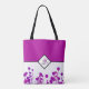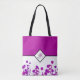 Turn heads with this stunning tote bag, a captivating blend of glamour and modern chic. Crafted in a luxurious medium violet-red pink, the bag boasts a sophisticated black line detail that ends in a chic diamond in the centre. Your personalised monogram initials, beautifully interlaced in a script and serif font combination, take centre stage, adding a touch of unique elegance.