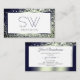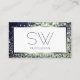 Elegance Blue Silver Ombre Glitter White Monogram Business Card