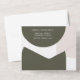 Simplify your wedding stationery with this elegant, minimal all-in-one wedding invitation, featuring the retro boho arch design. The inside showcases a soft sage green arch framing your wedding details, complemented by a simple beige arch in the top left corner and one arc in the bottom left. The front of the card includes all your address details and the names of the people you will deliver the card to. Unlike a traditional invite, this smart design unfolds to reveal a detachable RSVP postcard, keeping everything together in one cohesive, tearable suite. Timeless elegance. White script typography.