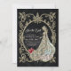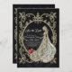Elegance in gold and black. Captivating composition that combines elegance and mystery. The focus is on a woman in a flowing dress, her silhouette glowing in brilliant gold against a deep black background. The raven symbolises mystery and intelligence and reinforces the mystical atmosphere of the design. Nearby blooms a red rose, whose vibrant colour represents passion and beauty. A combination of darkness and light, elegance and mystery