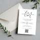 One of the standout features is the integrated QR code, allowing guests to easily RSVP, view event details, or access a wedding website with a simple scan—bringing convenience to your guests while keeping your event elegantly modern. Crafted with high-quality materials and a polished finish, this wedding invitation embodies grace, style, and innovation, making it the perfect choice for couples looking to add a touch of personalisation and sophistication to their big day.