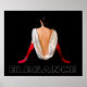 FORMAL ATTIRE WITH OUR VIEW TO A BEAUTIFUL WOMAN'S BARE BACK IN STYLISH LOW/CUT BACK DRESS WITH RED SILK LONG SLEEVED GLOVES