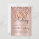 Elegance Rose Gold Glitter Balloon 100th Birthday Invitation