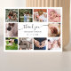 A beautiful modern square photo grid collage postcard perfect for thanking your baby shower guests for gifts, love, and support received. The modern design features a collage of 10 square customisable photos. In the centre there is a ´´thank you´´ message in a chic whimsical script and your baby name and date of birth, in elegant classic lettering. On the back is your customisable thank-you message. Through the "personalisation" button you can replace the photos and change the text.