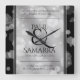Celebrate the 10th tin** wedding anniversary with this commemorative acrylic clock! Elegant black serif lettering with hexagonal confetti on a tin foil background edged by black bars add a memorable touch for this special occasion and milestone. Customise with couple's names, dates of marriage, and congratulatory messages.