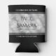 Celebrate the 10th tin wedding anniversary with this stylish commemorative can cooler! Elegant black and white serif lettering with hexagonal confetti on a tin foil background add a memorable touch for this special occasion and milestone. Customise with the happy couple's name, years of marriage, and personalised congratulatory messages on the top and bottom. Reverse shows identical design. Use as is, or replace with a photo of the couple.