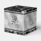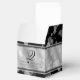 Celebrate the 10th wedding anniversary in style with this commemorative favour box! Elegant black script and serif lettering with hexagonal confetti on a tin background edged with black bars add a memorable touch for this special occasion and milestone. Customise with the happy couple's names, add an initial or monogram for their surname, and add dates for their tin anniversary. Personalised messages can be added to the top and side panels.