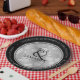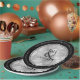 Celebrate the 10th wedding anniversary with these commemorative paper plates! Elegant black and white serif lettering with hexagonal confetti on a tin background add a memorable touch for this special occasion and milestone. Customise with the happy couple's names, and add dates for their tin anniversary. Wraparound text on the rims of the plate may be personalised with special congratulatory messages, or used as is.