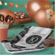 Celebrate their 10th tin wedding anniversary with these stylish paper plates! Elegant black and white lettering with hexagonal confetti on tin foil and black backgrounds add a memorable touch for this special occasion and milestone. Personalise with couple's names and dates of marriage.