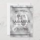 This flat card is the simple but beautiful way to remind family and friends to save the date for 10th tin wedding anniversary celebrations. Elegant lettering with hexagonal confetti on a tin foil background add a memorable touch for this special occasion and milestone. Customise as desired.