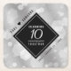 Celebrate the 10th tin wedding anniversary with these stylish paper coasters! Elegant black and white lettering with hexagonal confetti on a tin foil background add a memorable touch for this special occasion and milestone. Personalise with the couple's names and years of marriage.