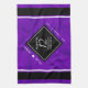 Celebrate the 12th silk wedding anniversary with this stylish hand towel! Elegant white lettering on a luxurious purple silk background bordered by black and white bars add a memorable touch for this special occasion and milestone. Personalise with the couple's names and dates of marriage.