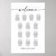 Modern Script Wedding Seating Plan. Welcome sign. Personalised Simple Minimalist Seating Chart for 130 guests (13 tables). Just click the customise further link, shown under the text personalisation area on the right, and choose your custom colour background. This sign poster template makes it fast and easy to create stunning additions to your wedding decor. Signs can be enlarged, there are many sizes to choose from, as well as options for custom framing and matting.