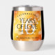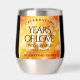 Make the 16th golden topaz wedding anniversary an unforgettable celebration with this commemorative stainless steel stemless wine tumbler! Elegant lettering with hexagonal confetti on a golden red background add a memorable touch for this special occasion and milestone. Customise with couple's names, dates of marriage, and congratulatory message. Reverse shows identical design.