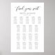Classic Calligraphy Script Wedding Seating Plan. Find Your Seat sign. Personalised Seating Chart for 170 guests. Just click the customise further link, shown under the text personalisation area on the right, and choose your custom colour background. This sign poster template makes it fast and easy to create stunning additions to your wedding decor. Signs can be enlarged, there are many sizes to choose from, as well as options for custom framing and matting.