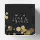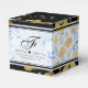 Celebrate the 18th wedding anniversary in style with this commemorative favour box! Elegant black script and serif lettering with gold-dusted hexagonal confetti on a white and porcelain blue marbled background edged with black bars add a memorable touch for this special occasion and milestone. Customise with the happy couple's names, add an initial or monogram for their surname, and add dates for their porcelain anniversary. Personalised messages can be added to the top and side panels.
