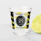Toast the 18th porcelain wedding anniversary with this commemorative shot glass! Elegant black and white lettering with gold-dusted hexagonal confetti on white, porcelain blue marbled, and black backgrounds add a memorable touch for this special occasion and milestone. Personalise with couple's names and dates of marriage.