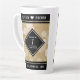 Celebrate the 1st paper wedding anniversary with this stylish latte mug! Elegant white lettering with hexagonal confetti on an aged paper background edged by black bars add a memorable touch for this special occasion and milestone. Personalize with the couple's names and years of marriage.