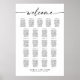 Modern Script Wedding Seating Plan. Welcome sign. Personalised Simple Minimalist Seating Chart for 210 guests (21 tables). Just click the customise further link, shown under the text personalisation area on the right, and choose your custom colour background. This sign poster template makes it fast and easy to create stunning additions to your wedding decor. Signs can be enlarged, there are many sizes to choose from, as well as options for custom framing and matting.