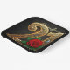 Elegant 21st Birthday Black Gold Filigree Red Rose Paper Plate