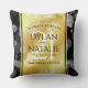 Celebrate the 21st wedding anniversary with this stylish throw pillow! Elegant lettering with hexagonal confetti on a brass foil background edged by black bars add a memorable touch for this special occasion and extraordinary milestone. Customise with the couple's names, dates of marriage, and congratulatory messages for their brass anniversary. Reverse shows identical design.