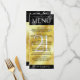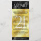 Add sophistication to 21st brass wedding anniversary celebrations with this dinner menu, which features elegant lettering and hexagonal confetti on brass foil and black backgrounds. Customise with couple's names, dates of marriage, venue details, menu items, and congratulatory messages.