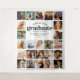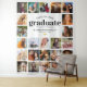 Modern graduation picture tapestry featuring a simple white background that can be changed to any colour, 24 square photos for you to customise with your own pictures, and a simple text template that is easy to personalise.