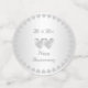 Elegant 25 silver wedding anniversary table confetti with two silver hearts at the centre surrounded by a circle of hearts. Mr. & Mrs and Happy Anniversary can be personalised.