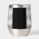 Make the 25th silver wedding anniversary an unforgettable celebration with this commemorative stainless steel stemless wine tumbler! Elegant lettering with hexagonal confetti on a faux silver foil background add a memorable touch for this special occasion and extraordinary milestone. Customise with couple's names, dates of marriage, and congratulatory message. Reverse shows identical design.