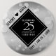 Celebrate the 25th silver wedding anniversary with this stylish button! Elegant black and white lettering with hexagonal confetti on a silver foil background add a memorable touch for this special occasion and extraordinary milestone. Personalize with the couple's names and dates of marriage.