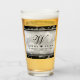 Make the 25th wedding anniversary an unforgettable celebration with this commemorative pint glass. Elegant black serif and script lettering with hexagonal confetti on a silver foil background edged by black bars add a memorable touch for this special occasion and extraordinary milestone. Customise with the happy couple's names, an initial for their surname, years of marriage, and/or personalised messages for their silver anniversary.