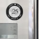 Celebrate the 25th silver wedding anniversary and remind guests of this impending milestone with this save-the-date magnet! Elegant black and white serif and sans serif lettering with hexagonal confetti on a silver foil background add a memorable touch for this special occasion and extraordinary milestone. Customise with the happy couple's names and years of marriage.