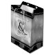 Celebrate the 25th wedding anniversary in style with this commemorative gift bag! Elegant black serif lettering with hexagonal confetti on a silver background edged by black bars add a memorable touch for this special occasion and extraordinary milestone. Customise with the happy couple's names, and add dates for their silver anniversary. Personalised messages can be added to the top and bottom of the gift bag.