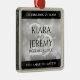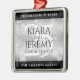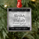 Celebrate the 25th silver wedding anniversary with this commemorative ornament! Elegant black and white lettering with hexagonal confetti on a silver foil background add a memorable touch for this special occasion and extraordinary milestone. Personalise with couple's names, wedding dates, and congratulatory messages.
