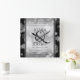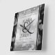 Celebrate the 25th wedding anniversary with this commemorative clock! Elegant black serif lettering with hexagonal confetti on a silver background edged by black bars add a memorable touch for this special occasion and extraordinary milestone. Customise with the happy couple's names, and add dates for their silver anniversary. Personalised messages can be added to the top and bottom of the clock.