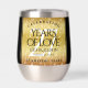 Make the 27th music wedding anniversary an unforgettable celebration with this commemorative stainless steel stemless wine tumbler! Elegant lettering with stylised musical note confetti on a faux gold foil background add a memorable touch for this special occasion and extraordinary milestone. Customise with couple's names, dates of marriage, and congratulatory message. Reverse shows identical design.