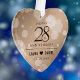 Celebrate the 28th linen wedding anniversary with this stylish ornament! Elegant black lettering with hexagonal confetti on an off-white linen background add a memorable touch for this special occasion and extraordinary milestone. Personalise with couple's names and wedding date. Reverse shows identical design. Use as is, or replace with a photo. This design is optimised for the circle, oval, heart, and shirt shapes.
