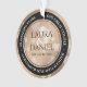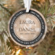 Celebrate the 28th linen wedding anniversary with this stylish ornament! Elegant black and white lettering with hexagonal confetti on an off-white linen background add a memorable touch for this special occasion and extraordinary milestone. Personalise with couple's names, dates of marriage, and congratulatory messages on the rims. Reverse shows identical design. This design is optimised for the circle shape.