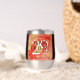 Make the 29th garnet wedding anniversary an unforgettable celebration with this commemorative stainless steel stemless wine tumbler! Elegant lettering with gold-dusted hexagonal confetti on a reddish orange background add a memorable touch for this special occasion and extraordinary milestone. Customise with couple's names, dates of marriage, and congratulatory message. Reverse shows identical design.