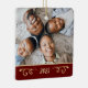 Personalise this elegant 2 photo 2 sided family photo gold and burgundy Christmas ornament with your own family photos and the year placed upon a Christmas blue background with gold typography and swirls. Start a new tradition to create your own family's personal ornament each Christmas. A wonderful gift to give to parents, grandparents, or to keep for yourself. Also available in other styles.