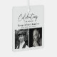 Remember a loved one at Christmas with this elegant 2 Photo Collage Memorial Funeral Tribute Christmas Ornament. Design features the text 'Celebrating the Life of', two pictures of your loved one, their name and dates and on the reverse a sweet sympathy quote that can be kept or customised making this sympathy gift unique and personal to you.