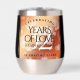 Make the 32nd bronze wedding anniversary an unforgettable celebration with this commemorative stainless steel stemless wine tumbler! Elegant lettering with hexagonal confetti on a bronze foil background add a memorable touch for this special occasion and extraordinary milestone. Customise with couple's names, dates of marriage, and congratulatory message. Reverse shows identical design.