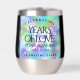 Make the 34th opal wedding anniversary an unforgettable celebration with this commemorative stainless steel stemless wine tumbler! Elegant lettering with hexagonal confetti on an iridescent opal background add a memorable touch for this special occasion and extraordinary milestone. Customise with couple's names, dates of marriage, and congratulatory message. Reverse shows identical design.
