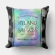 Celebrate the 34th wedding anniversary with this stylish throw pillow! Elegant lettering with hexagonal confetti on an iridescent opal background edged by black bars add a memorable touch for this special occasion and extraordinary milestone. Customise with the couple's names, dates of marriage, and congratulatory messages for their opal anniversary. Reverse shows identical design.